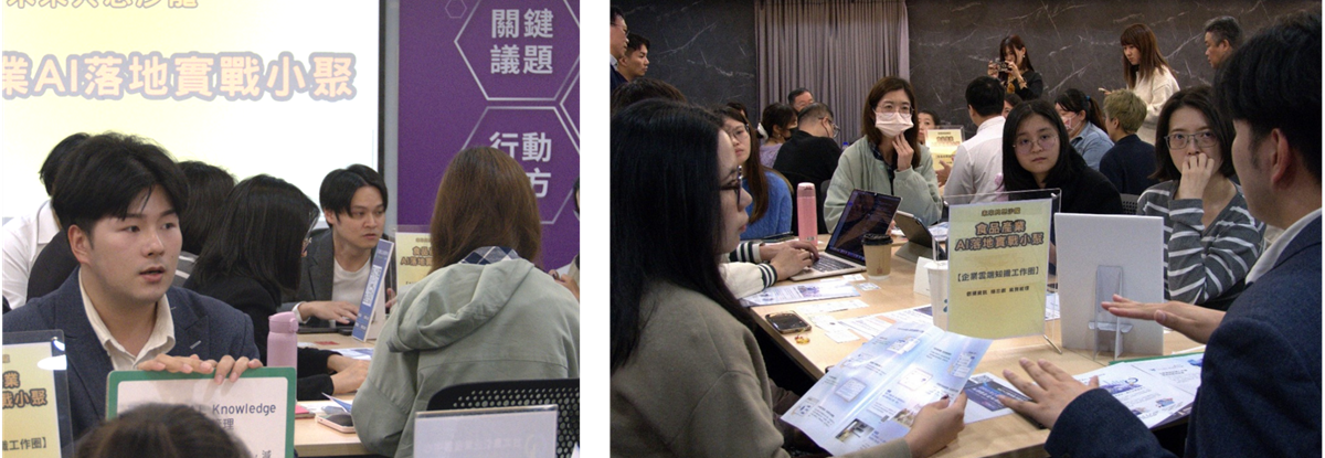 除講師分享外,活動也透過World Café輪動交流設計,讓學員將自身經營上遇到的問題直接帶入現場討論。與會企業不只是聆聽案例,而是從自身情境出發,與講師及其他業者即時交換觀點、釐清問題脈絡,進一步理解不同工具的適用方式與導入切入點。這樣的互動形式,也讓現場討論更貼近實務,呈現出學員從疑問出發、逐步建立應用理解的過程。部分企業更於現場進一步洽詢應用細節,顯示此次小聚不僅提升了食品業者對AI多面向用途的理解,也促進後續合作與導入評估的可能。