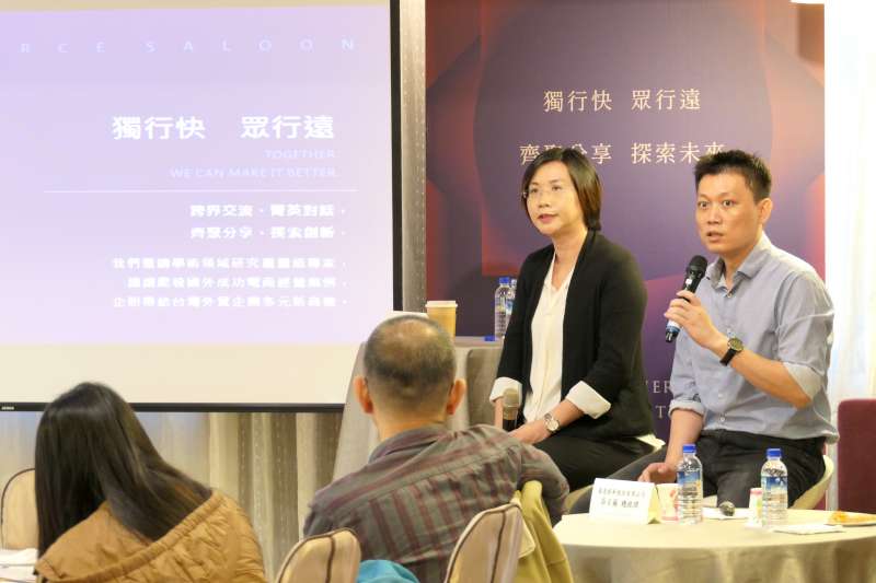 產業沙龍12月場來賓,從左至右依序為戴華國際蔡建郎營運總監、善恩創新吳日蘋總經理、商發院朱訓麒博士。
