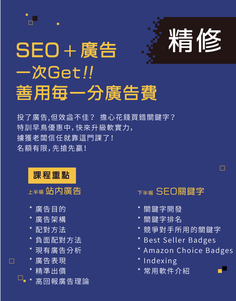 [17Cross專修學程]Amazon實務技巧黃金精修班(廣告關鍵字)