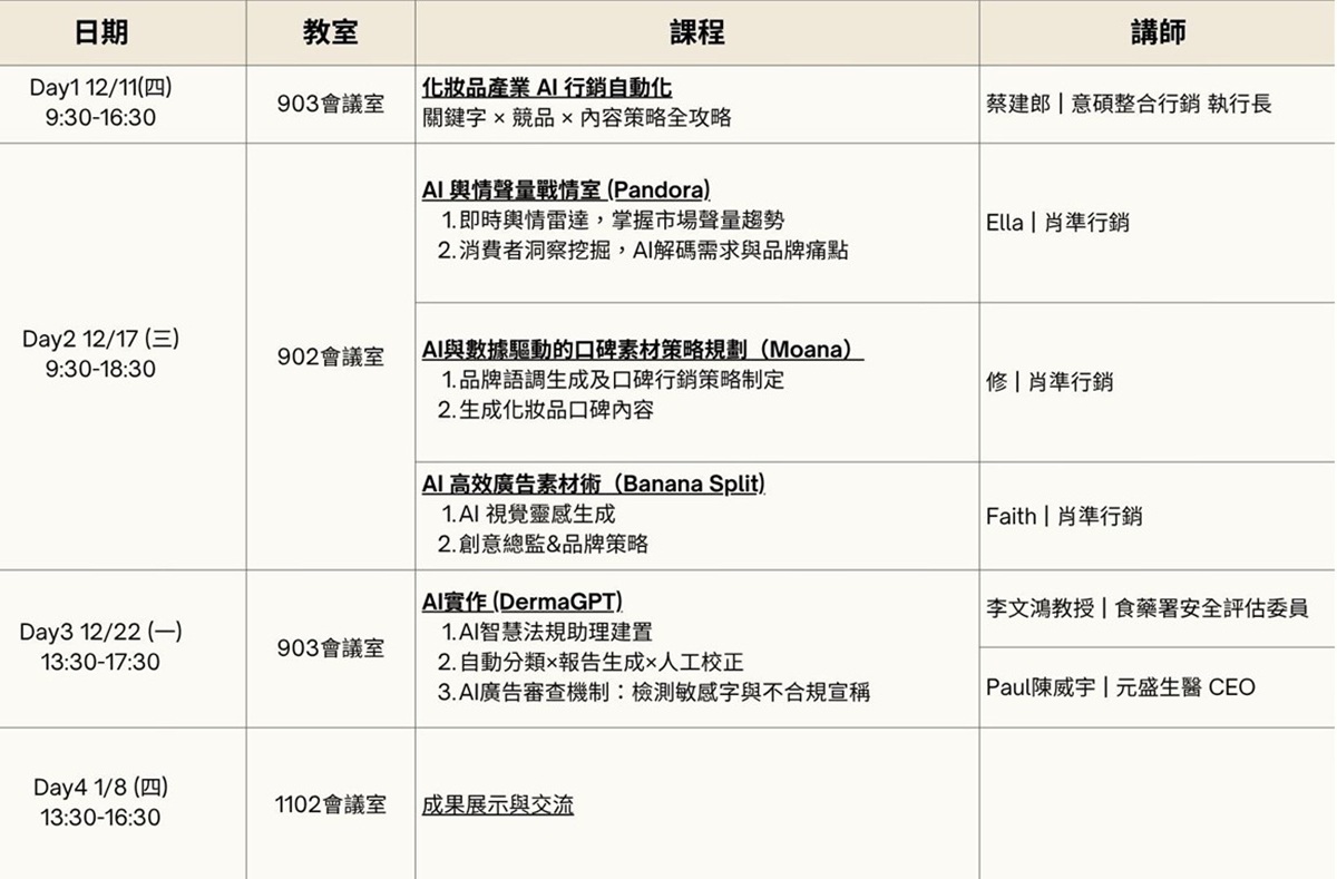 化妝品業全面AI化營運實作工作坊